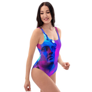 This one-piece swimsuit features a cheeky fit with a scoop neckline and a low scoop back, designed to enhance your aquatic experience. The suit is made of performance fabric that is soft and luxurious to the touch.